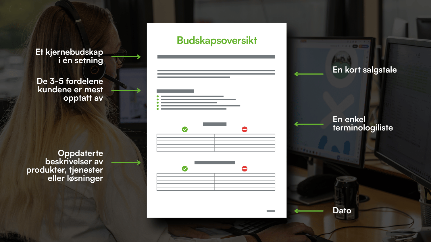 Her er noen forslag til hva du skal ta med i budskapsoversikten: